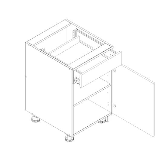 Double Inset - Foiled - Base Cabinet-15"W X 24"D X 34-1/2"H With 1 Door, 1 Drawer & 1 Shelf.