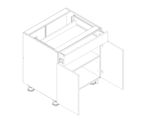 Double Inset - Painted - Base Cabinet - 21"W X 24"D X 34-1/2"H With 1 Door, 1 Drawer & 1 Shelf.